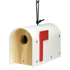 Give birds a mailbox of their own! Constructed of white PVC foam and Western Red Cedar this house features a floor that pulls down for easy cleaning. Includes a nylon hanging cord. 1 1/8 inch entrance hole.
