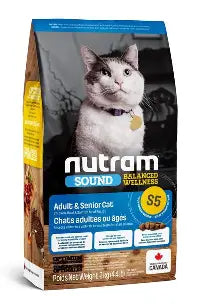 S5 Nutram Sound Balanced Wellness® Adult and Senior Cat Food is a Holistic, multi-beneficial, and nutrient-rich recipe that improves your pet’s wellness from the inside-out.