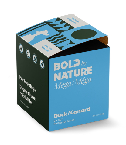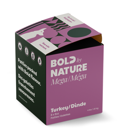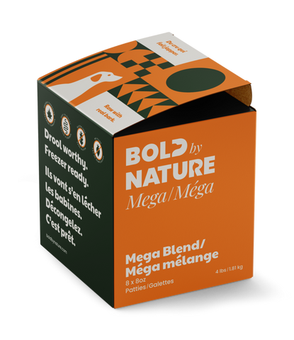 Bold by Nature Mega was created to deliver high-quality, budget-friendly raw food—perfect for large dogs and multi-dog households. It is also an excellent choice for smaller breeds thanks to its smooth, triple-ground texture, which makes it easy to digest.