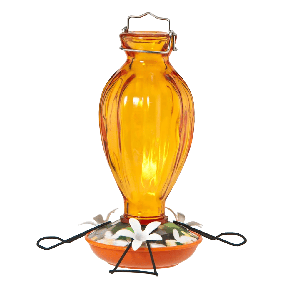 Description:20 OZ Capacity Oriole Liquid Nectar Feeder, 3 Feeding Ports, Beautiful Orange Glass Bottle, Hangs Easily.