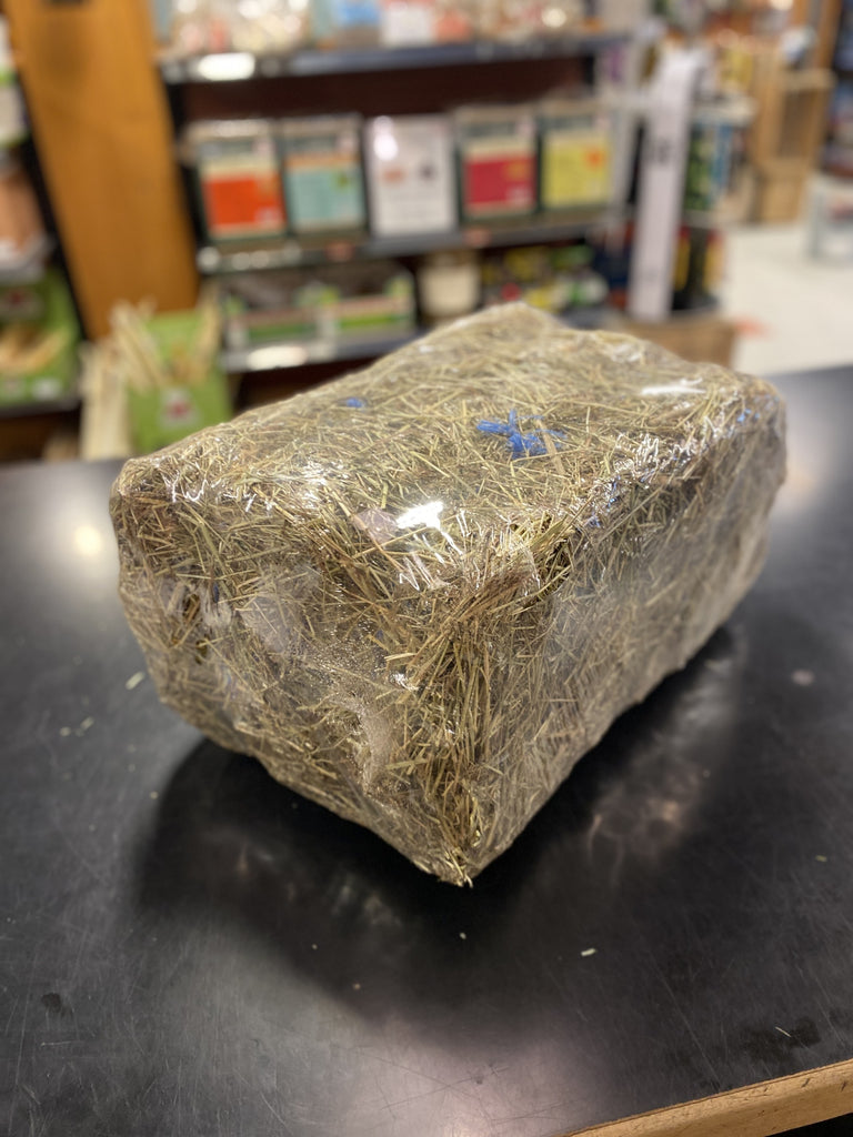 First cut mini timothy hay bales. Clean and highly nutritious, these mini bales are perfect for a variety of small animals. These 10 pound bales are grown in Ontario and shrink wrapped to reduce mess!