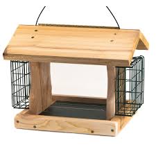 Premier Cedar Feeder with Suet Cages. Capacity 5.5 lbs seed and 2 suet cakes. MADE IN U.S.A